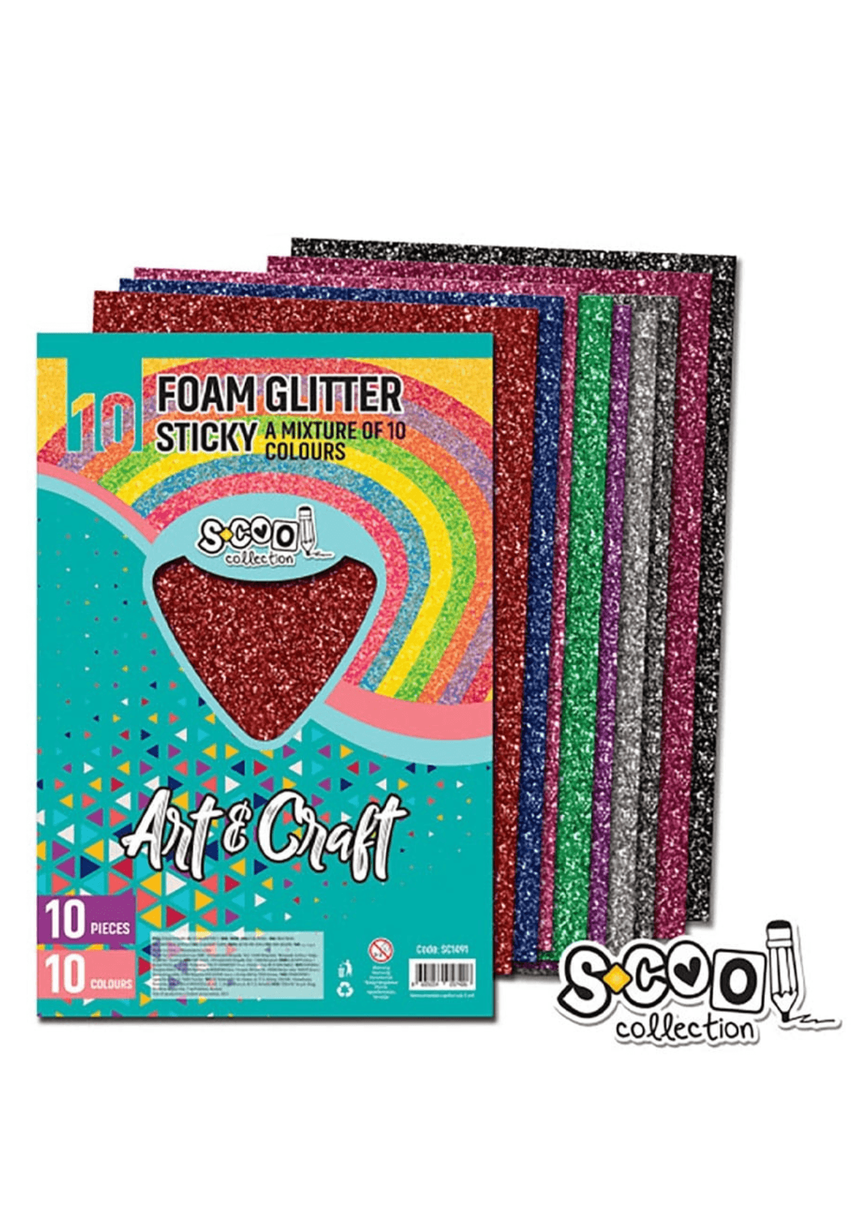Hârtie buretată, adezivă, glitter, 10 culori/set, 20×30 cm