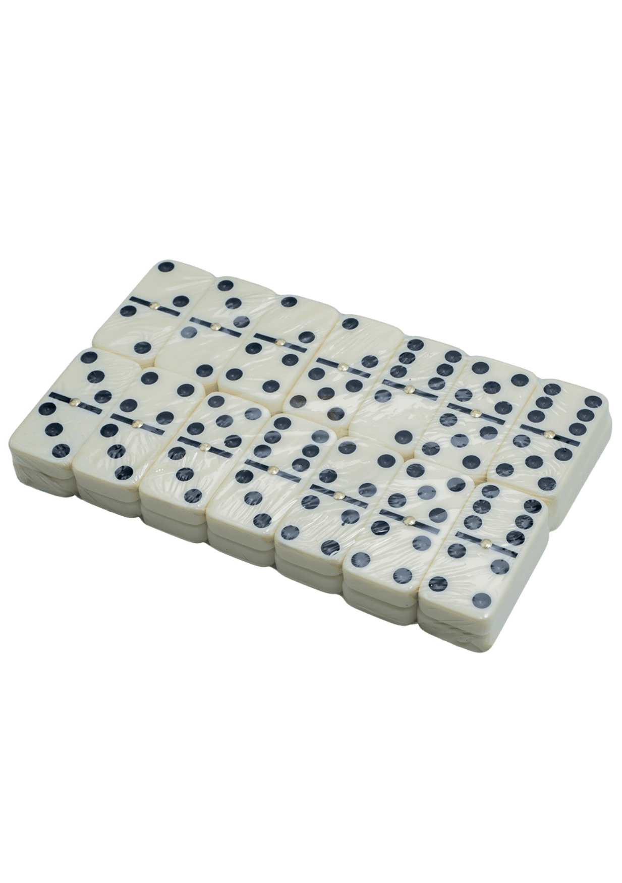 – Fiecare piesa este impartita in doua patrate, fiecare avand marcate combinatii de puncte de la 0 (fara puncte) la 6, acoperind toate combinatiile posibile. In set sunt incluse 7 piese duble (dublu 0, 1, 2, 3, 4, 5, 6), unde ambele jumatati au acelasi numar de puncte.