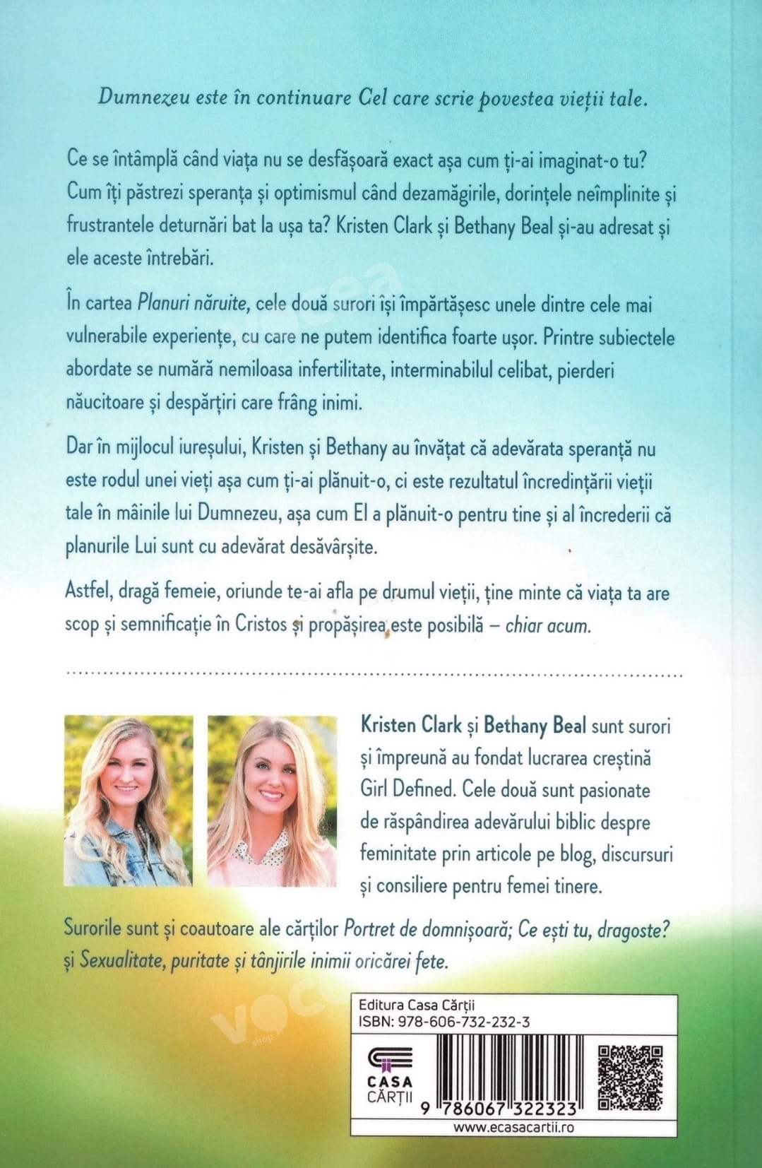 Cum îți păstrezi speranța și optimismul când dezamăgirile, dorințele neîmplinite și frustrantele deturnări bat la ușa ta? Kristen Clark și Bethany Beal și-au adresat și ele aceste întrebări. Surorile sunt și coautoare ale cărților Portret de domnișoară; Ce ești tu, dragoste? și Sexualitate, puritate și tânjirile inimii oricărei fete.